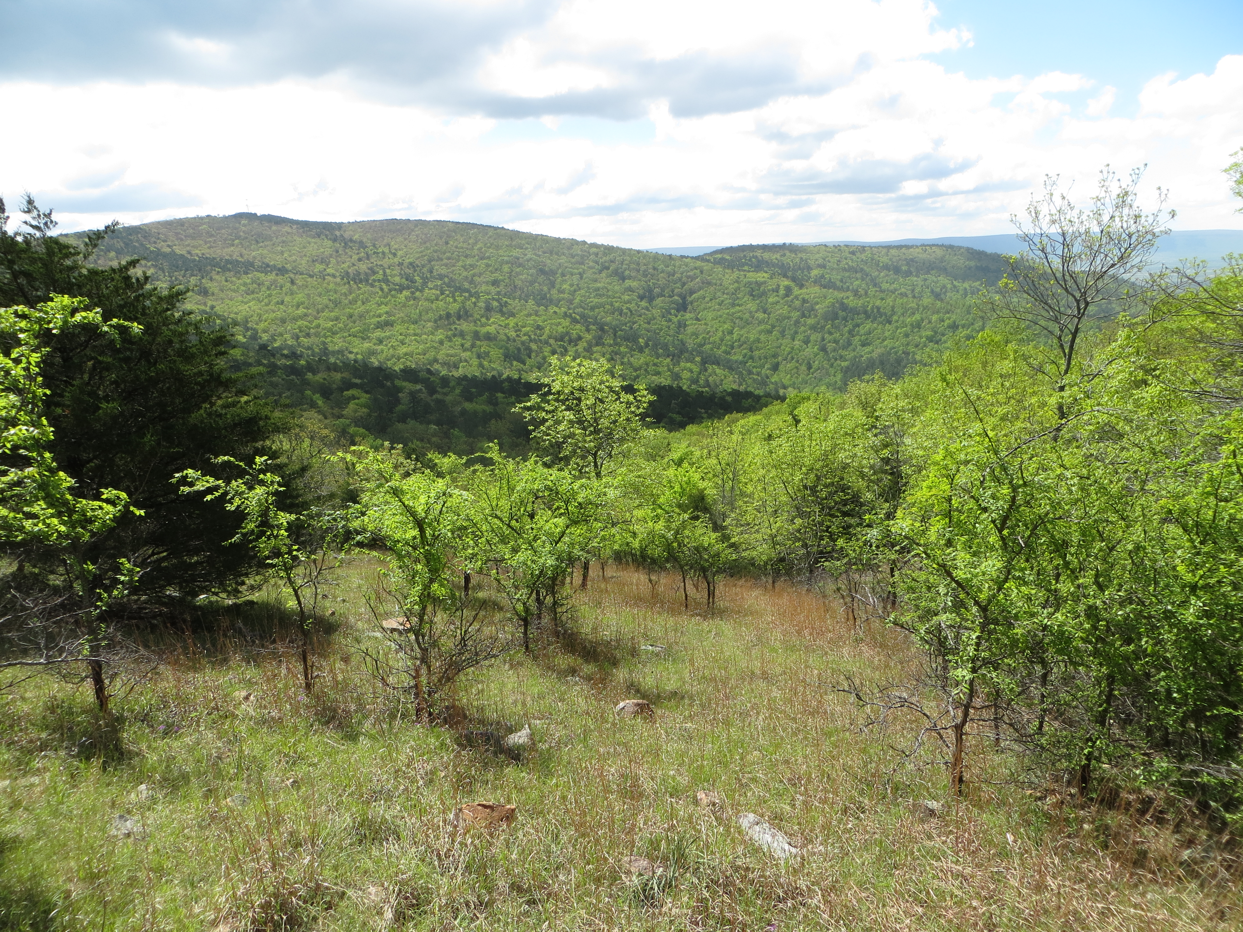 We hiked through the predominately pine forest for the next couple of hours before crossing the road to the other side of the hill. There was a noticeable change in vegetation once we started descending. More deciduous trees and thicker understory hindered our progress, not to mention the multitude of rocks littering the trail. We continued through the thickets trying to search for a campsite while avoiding poison ivy as much as possible. We passed a trail shelter at mile 9.4 but it was occupied so we hiked on looking for even just a patch of flat ground. Fortunately two miles later we saw a moderately used campsite. After verifying that there were no patches of poison ivy in the immediate vicinity we decided to set up there. Conveniently, there were some large rocks that we were able to sit on while cooking dinner after laying out the footprint to dry a bit. After dinner we did camp chores and set up the tent, correctly this time. We did not want to have to get out at all tonight. Since it was pretty early still, about 7, we played card games until our backs hurt to sit hunched in the tent.