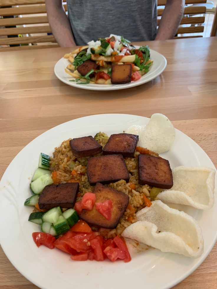 The next morning we woke up early, put on bug spray and quickly packed up our tent. We weren’t getting any more bug bites this time! We had packed breakfasts for camping but it wasn’t worth the possibility of bug bites this morning so we ate pop-tarts on the road. On our way to New Orleans we stopped in Jackson, Mississippi for lunch at Cool Al’s. Every burger that they had could be made with a beef, turkey, black bean, or impossible patty. Every single menu item had a vegetarian or vegan option!