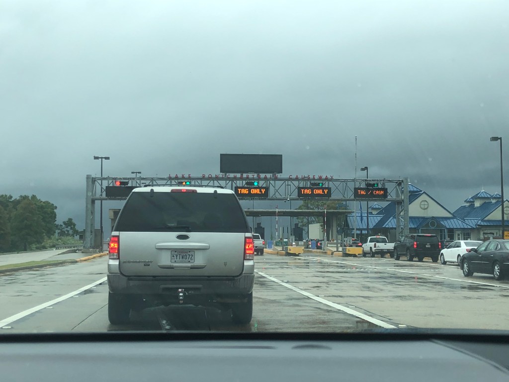 After this excitement we were finally headed to New Orleans! Kaila took this afternoon leg of driving, and boy did she have a surprise in for her. We chose to drive across Lake Pontchartrain…all 22 miles of it. Unfortunately the weather decided it needed to rain for the majority of that drive but it was all worth it once we arrived in the city!